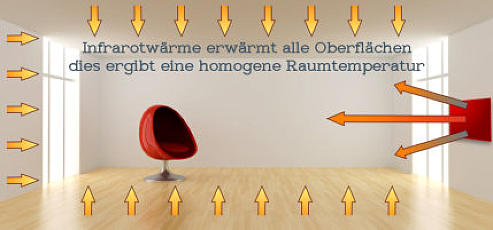 Es ist auch Nahe liegend Räume mit Infrarotwärme zu beheizen, denn es ist die natürlichste Art der Wärmeübertragung und ist mit